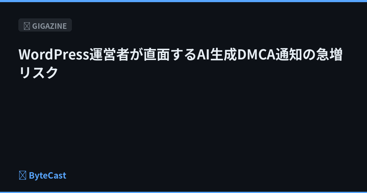 WordPressのDMCA削除通知が20%増加し、AI悪用による粗悪な通知が急増する懸念。運営サイトの削除リスク上昇に備えた対策が急務。