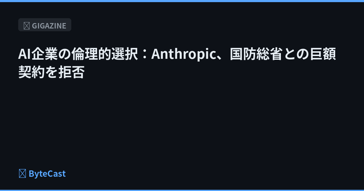AI企業の倫理的選択:Anthropic、国防総省との巨額契約を拒否