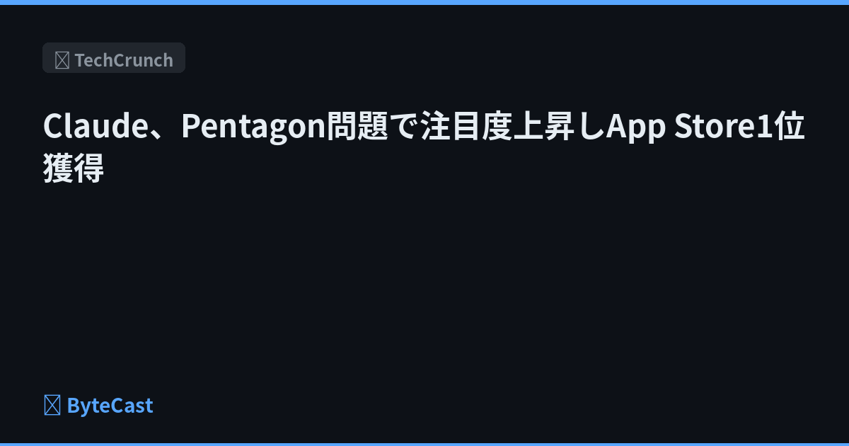 AnthropicのClaudeがApp Store1位に浮上。政府機関との対立姿勢がユーザー支持を得た可能性が指摘され、AI企業の政策スタンスがダウンロード数に影響を及ぼす新しい傾向が見える。