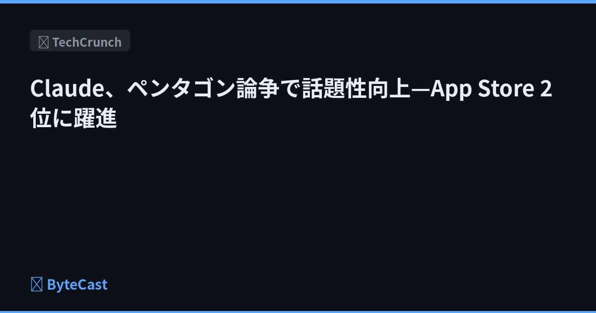 Claude、ペンタゴン論争で話題性向上—App Store 2位に躍進