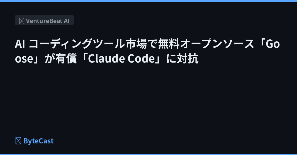 Anthropicの有料AI開発支援ツール「Claude Code」に対し、BlockのオープンソースAIエージェント「Goose」が無料で同等機能を提供。開発者の選択肢が急速に拡大している。