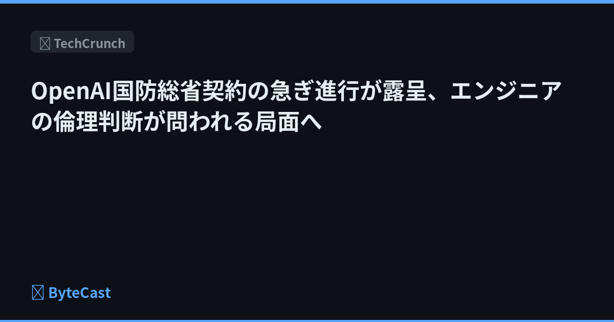 OpenAI国防総省契約の急ぎ進行が露呈、エンジニアの倫理判断が問われる局面へ
