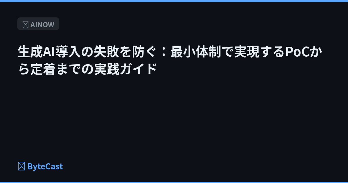 生成AI導入の失敗を防ぐ:最小体制で実現するPoCから定着までの実践ガイド