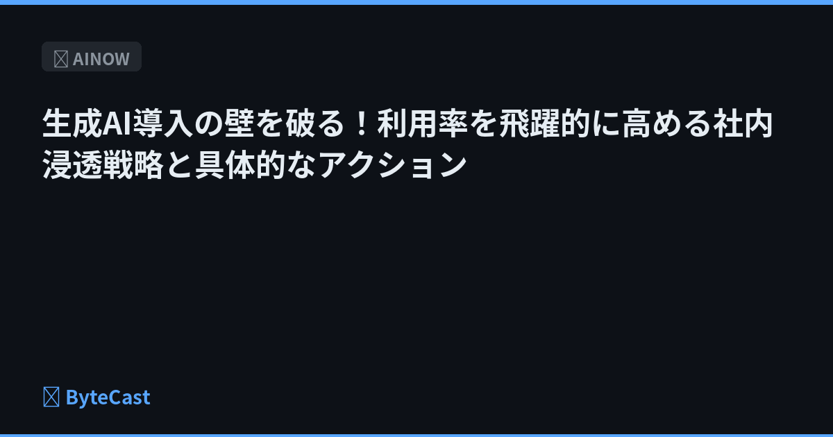 生成AIの導入効果を最大化するため、単なるツール配布に留まらない組織・文化的な浸透戦略を解説。利用率を倍増させるための具体的な施策とエンジニアが取るべきアクションを提示します。