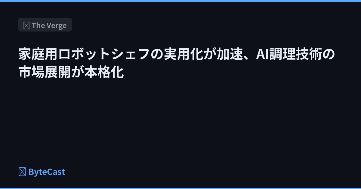 家庭用ロボットシェフの実用化が加速、AI調理技術の市場展開が本格化