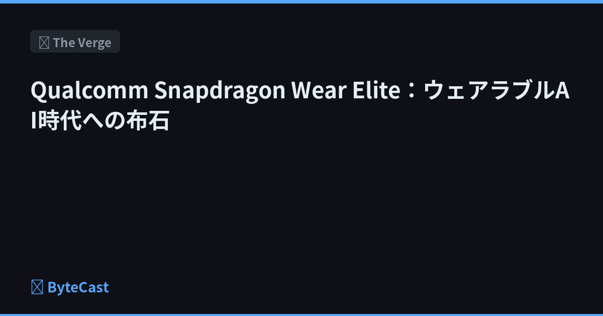 QualcommがSnapdragon Wear Eliteを発表。ウェアラブルデバイスのAI機能強化に向けた新チップで、W5 Plusと共存する戦略的なポジショニングとなっている。