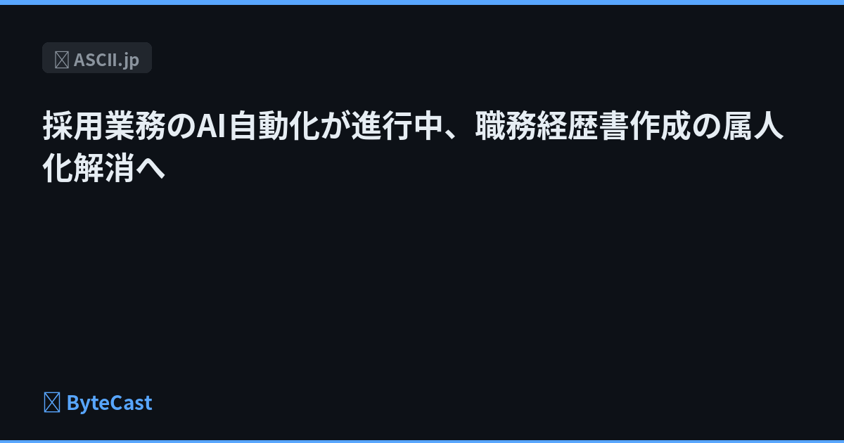 採用支援プロセスにおけるAI活用が加速。履歴書・職務経歴書作成の自動化により、採用担当者の業務効率化と標準化が実現する可能性がある。