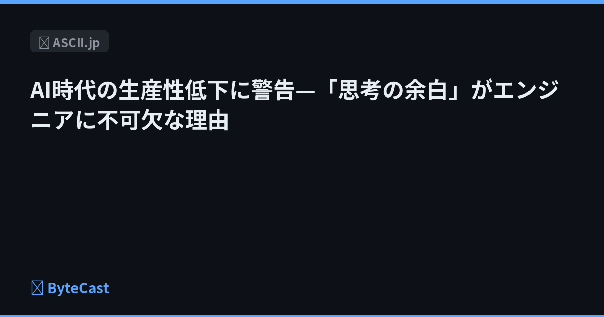 AI時代の生産性低下に警告—「思考の余白」がエンジニアに不可欠な理由