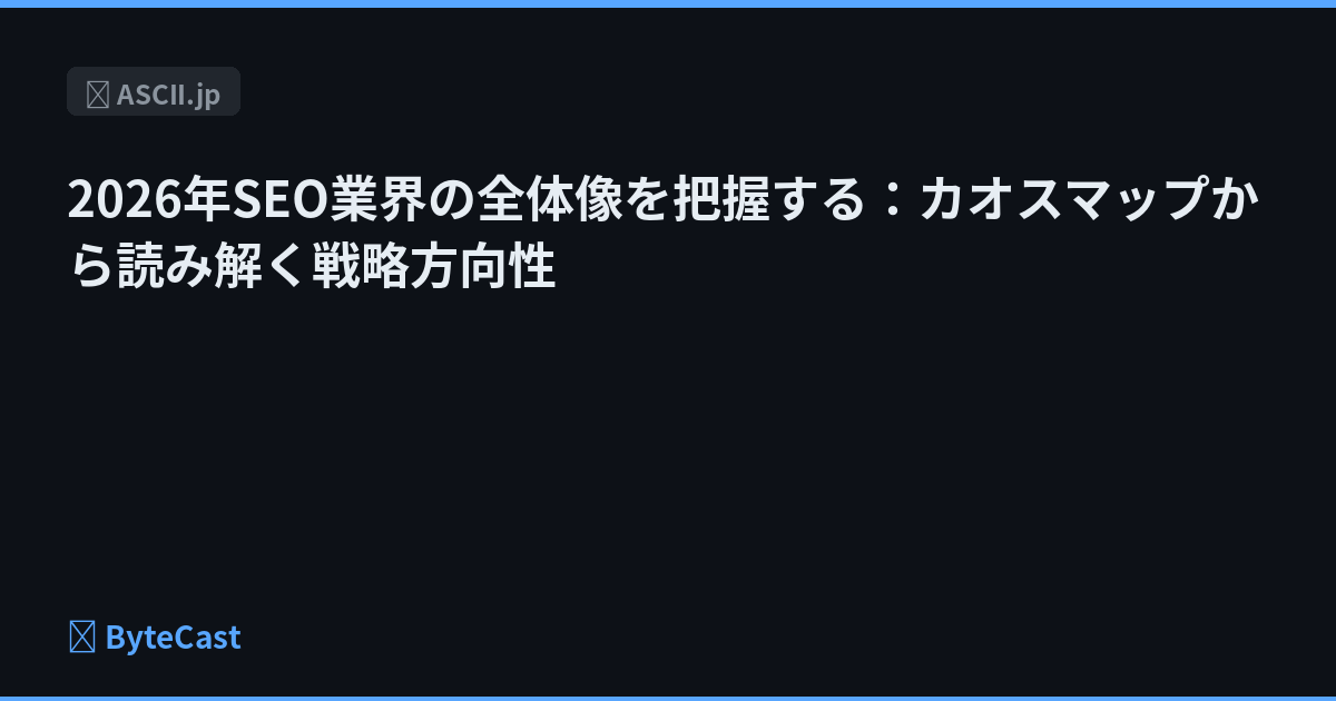 SEO業界の2026年版カオスマップが公開。業界の細分化と主要プレイヤーの動向を整理し、エンジニアが押さえるべき技術トレンドと企業戦略を解説します。