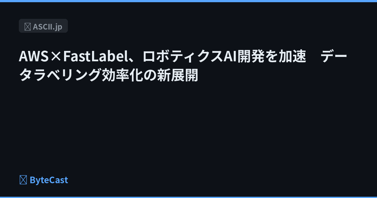 FastLabelがAWSのフィジカルAI開発支援プログラムに採択。ロボティクスAI開発におけるデータラベリング課題への解決策が加速する見通し。
