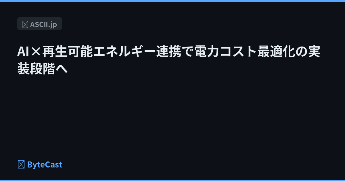 AI×再生可能エネルギー連携で電力コスト最適化の実装段階へ