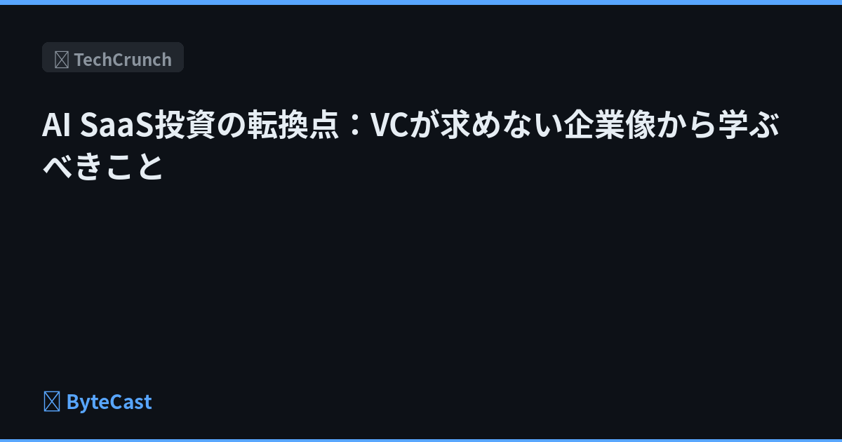 VC投資家がAI SaaS企業に求めなくなった要素とは。投資トレンドの変化から、スタートアップとエンジニアが意識すべき市場環境の実態を解説。