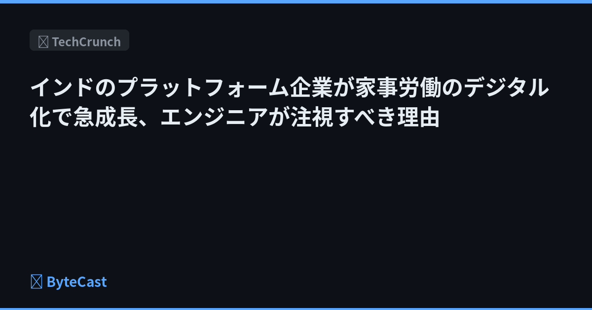 インドのプラットフォーム企業が家事労働のデジタル化で急成長、エンジニアが注視すべき理由