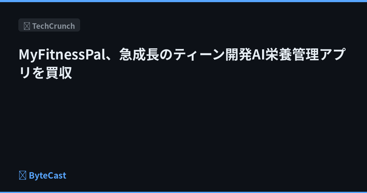MyFitnessPal、急成長のティーン開発AI栄養管理アプリを買収