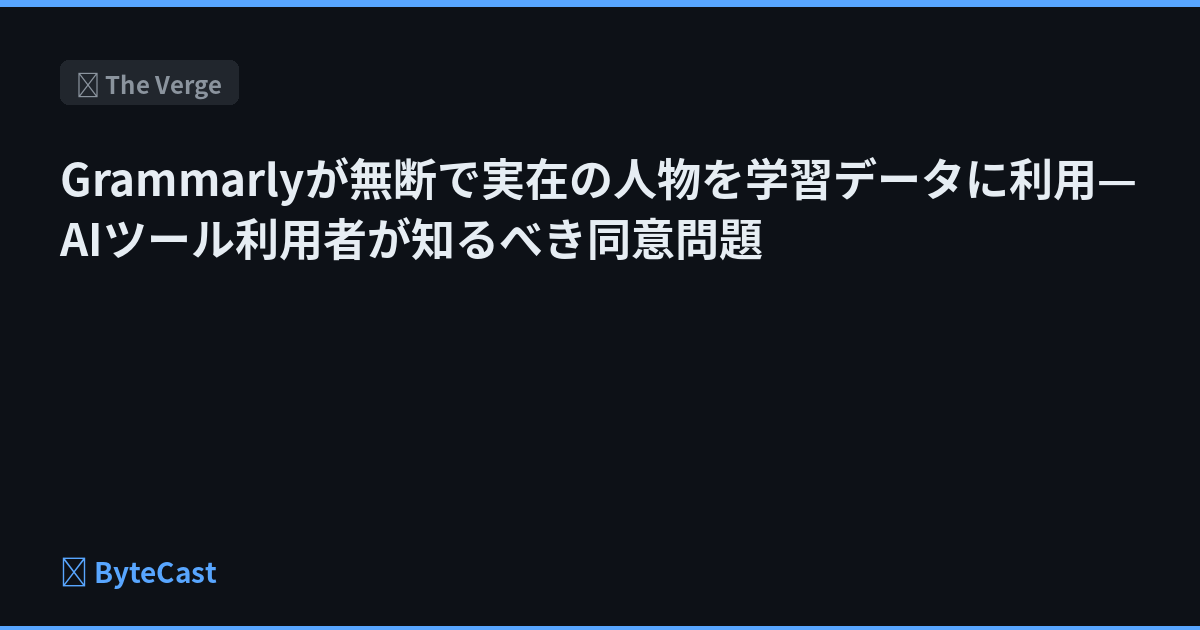 Grammarlyの「expert review」機能が、本人の明示的な同意なく実在の人物(故人含む)の名前とプロフィールを利用していることが判明。AI学習データと個人情報保護の課題を浮き彫りに。