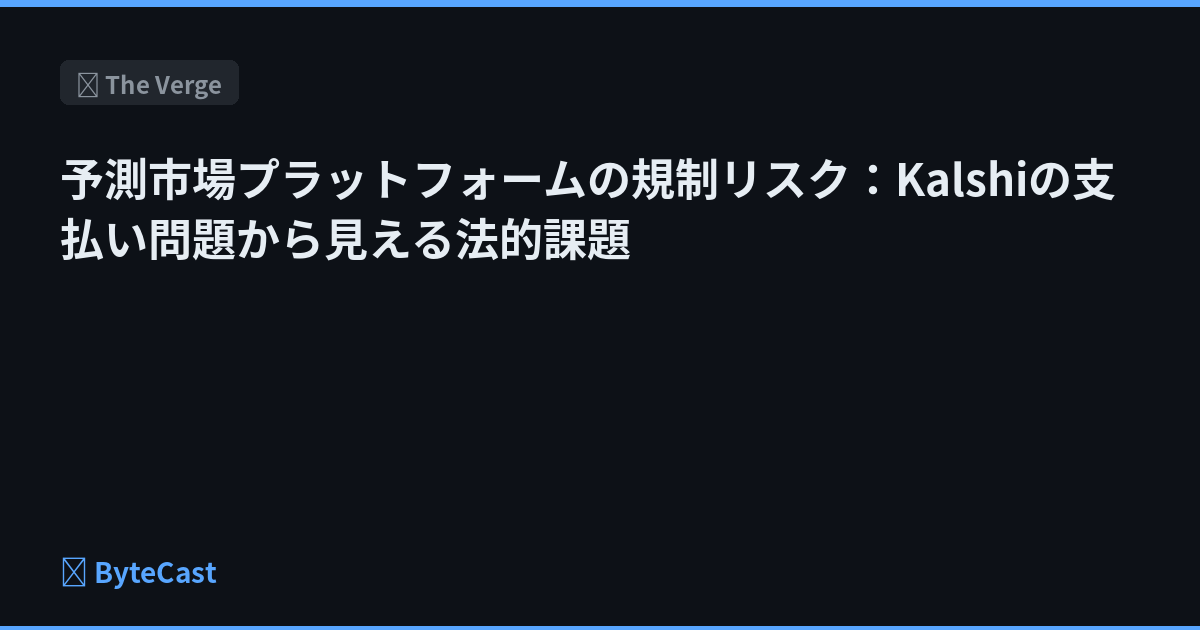 予測市場プラットフォームの規制リスク:Kalshiの支払い問題から見える法的課題